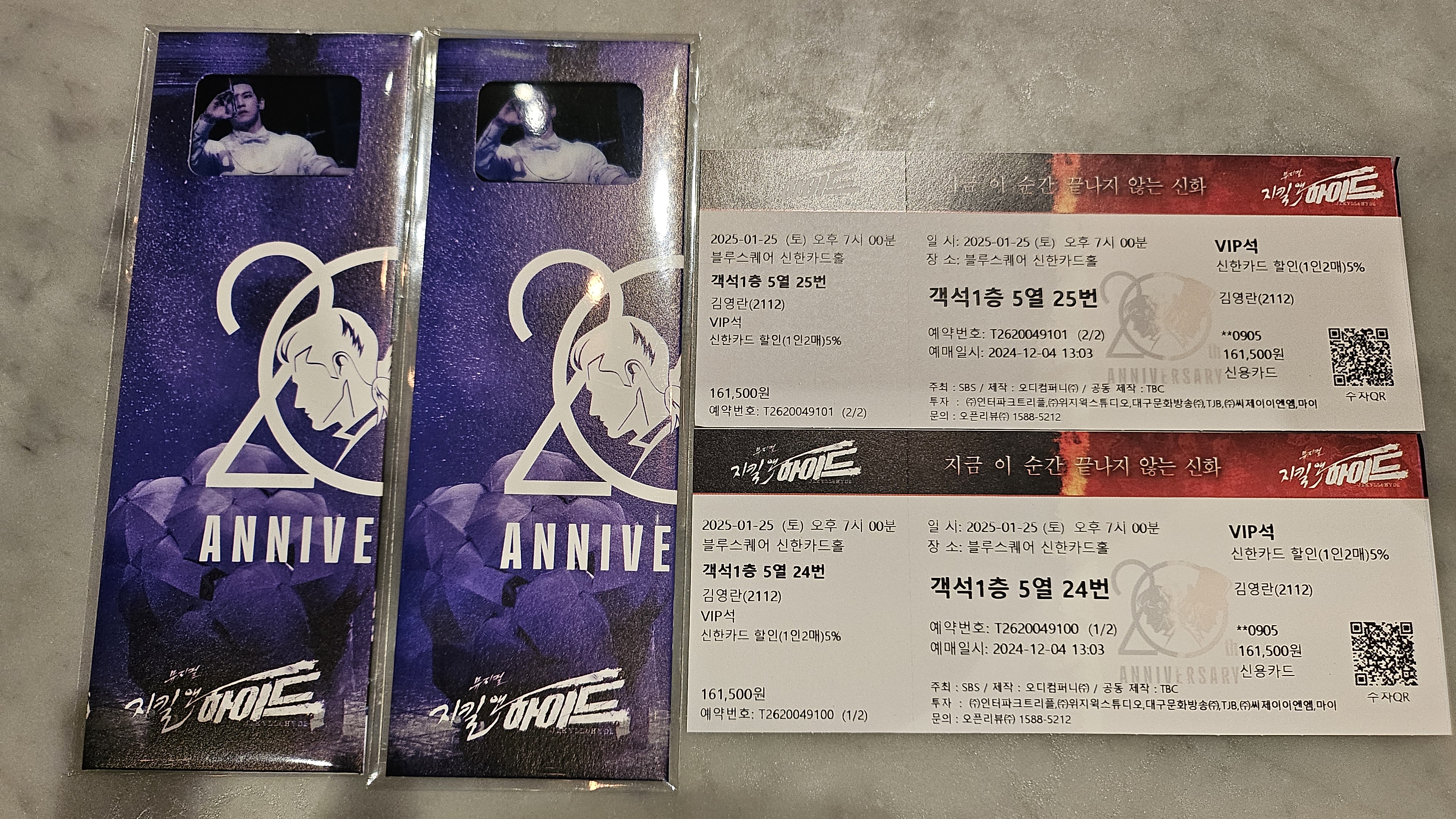 2025년 1월 25일 블루스퀘어에서 지킬 앤 하이드 관람. 좌석은 티켓베이에서 1층 5열 24~25번으로 구매. 무대 바로 앞에서 뮤지컬 관람하기는 처음인 듯… 우리나라 뮤지컬 수준이 많이 올라간 것을 느낀 하루 ~